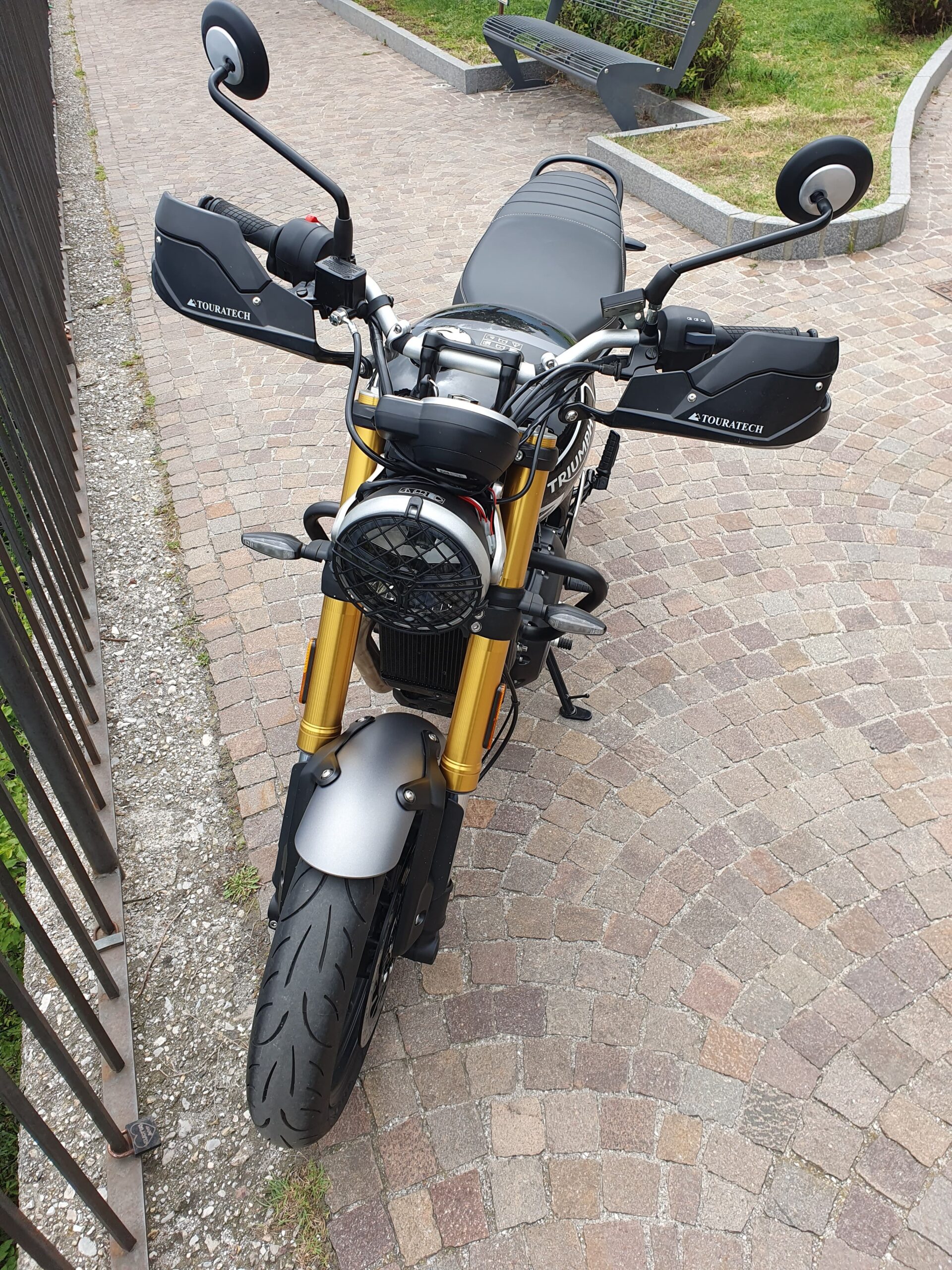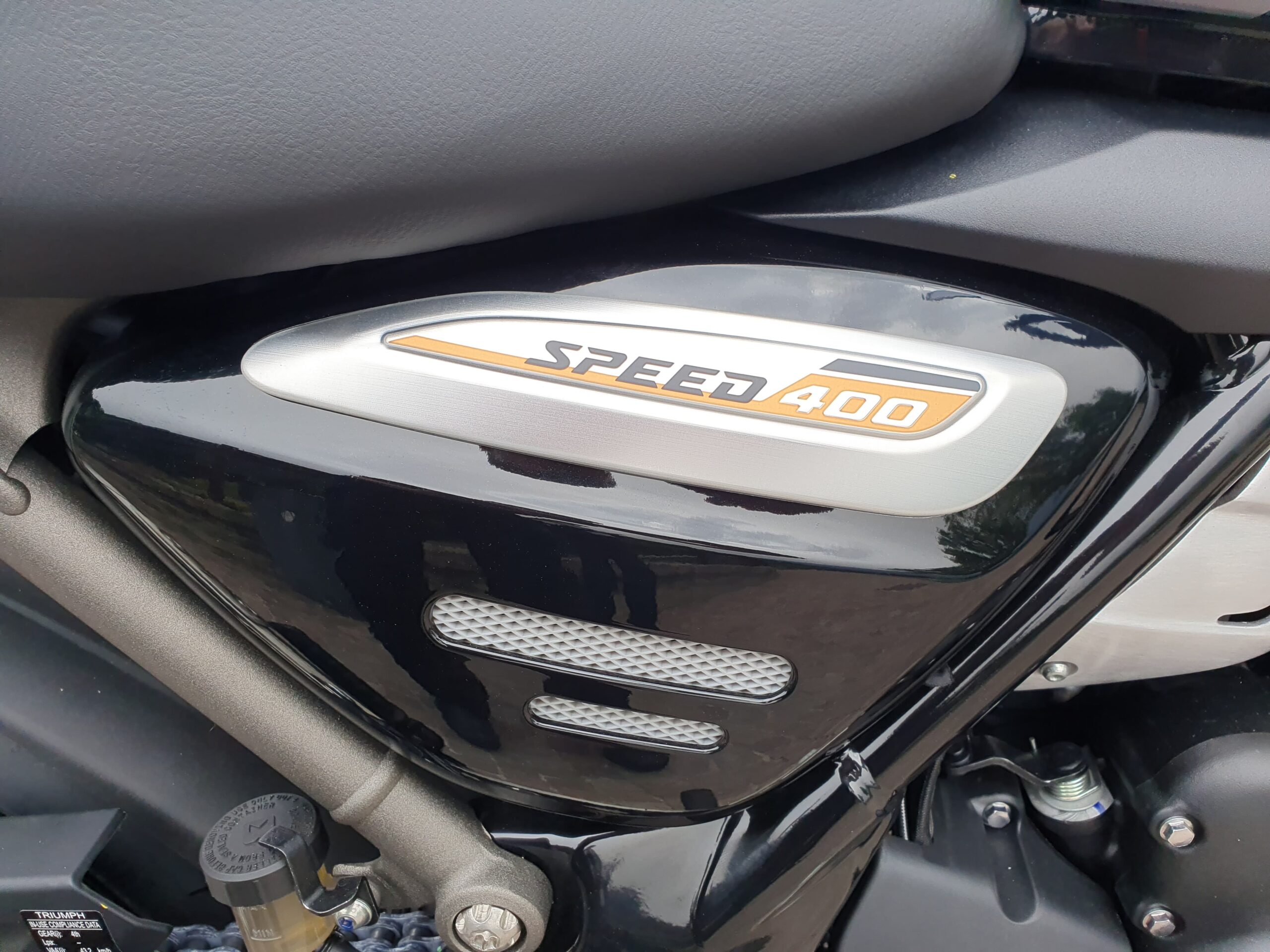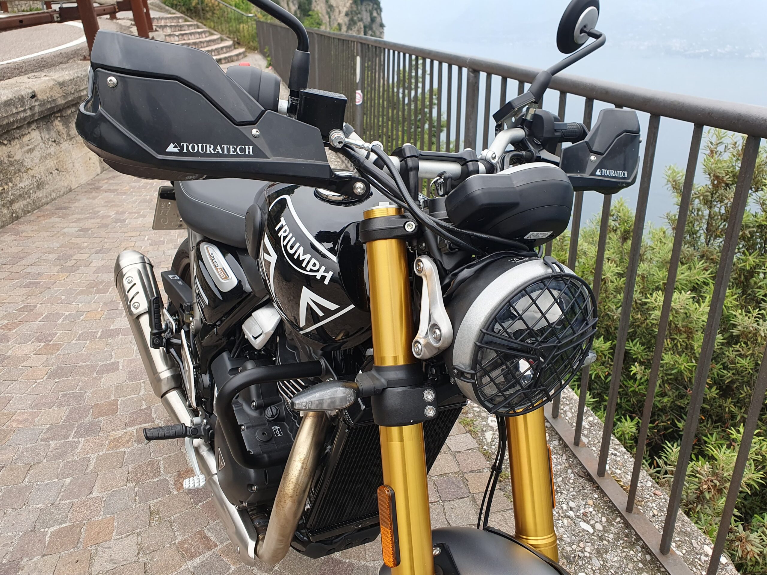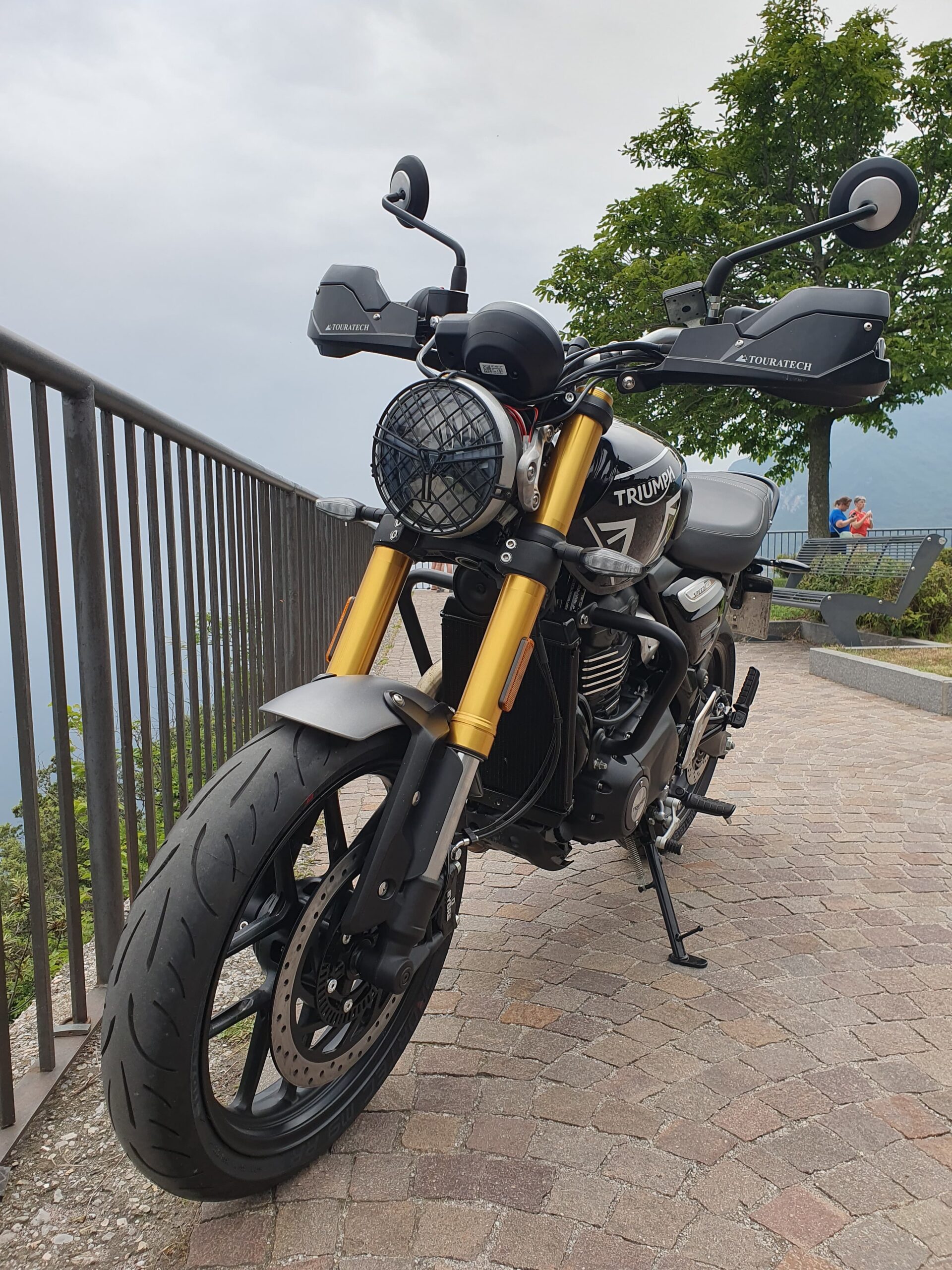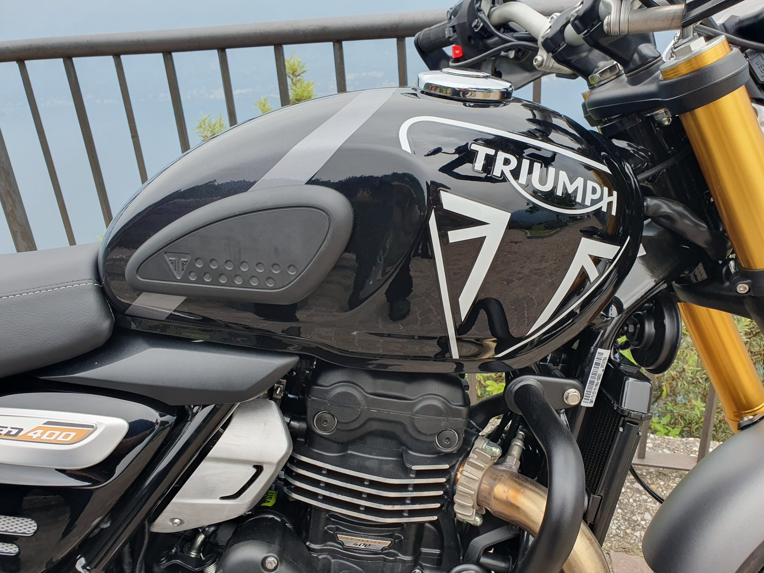 Triumph 400 Speed, 40PS, 170kg, Griffheizung, Sturzbügel, Sturzpad und Handprotektoren